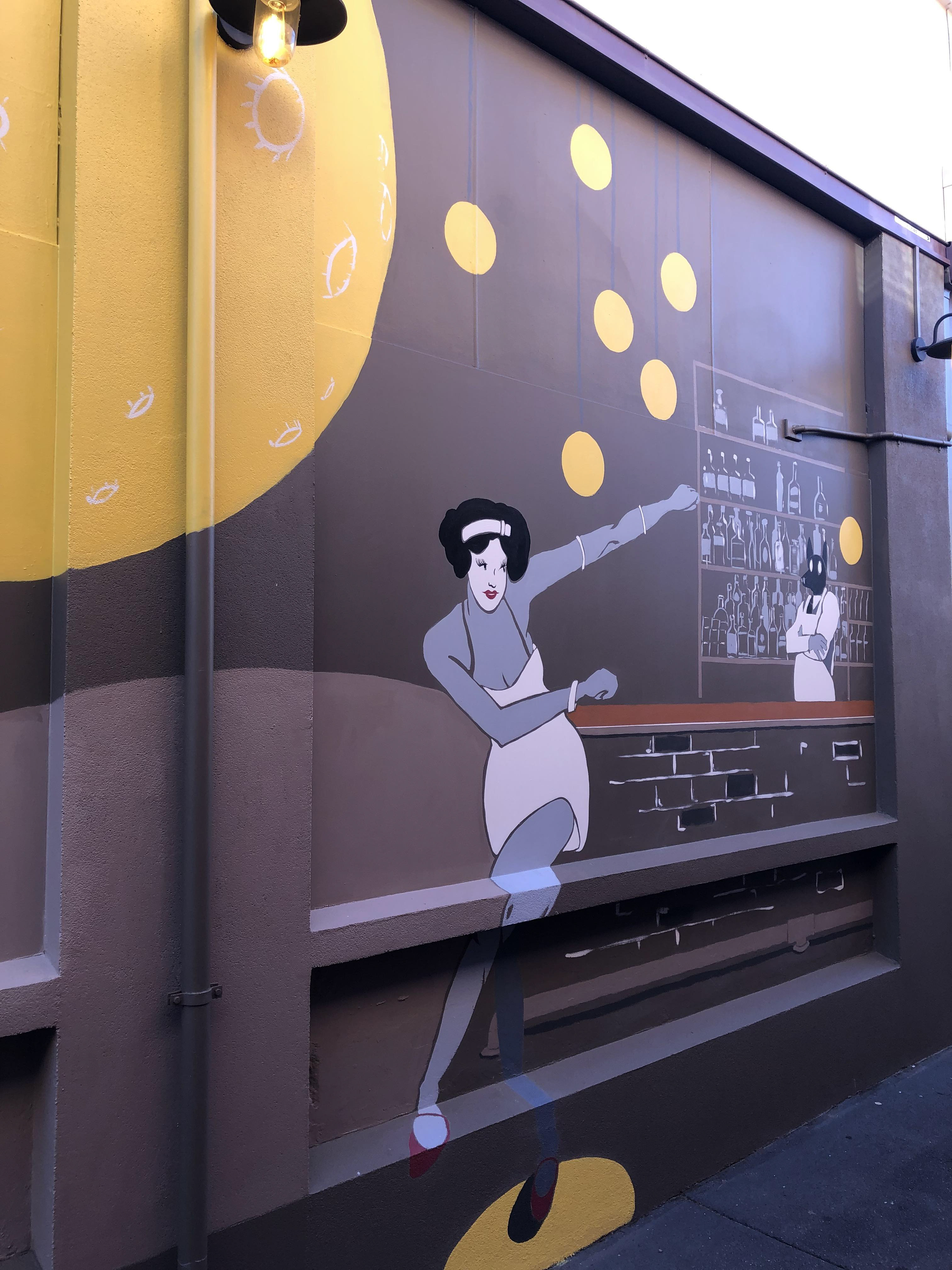 1920's prohibition themed mural in a laneway leading to Three Wolves Whisky Bar, Cairns, Australia.